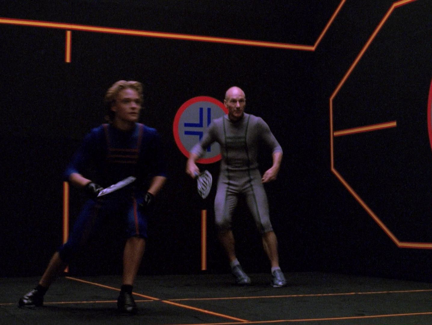 It’s a bottle show, so the name of the game is saving money by reusing everything you can (mostly the Enterprise sets on Sound Stage 9, although the squash court was set up in Sound Stage 16). You need a good high concept to make these kinds of low-budget episodes work, and in this case we have something like an existential conundrum to chew over. It’s one of those stories where the question of whether someone is or isn’t human doesn’t hinge upon weirdo DNA or space alien reveals, but is rather a philosophical reflection about what makes someone part of a particular culture.